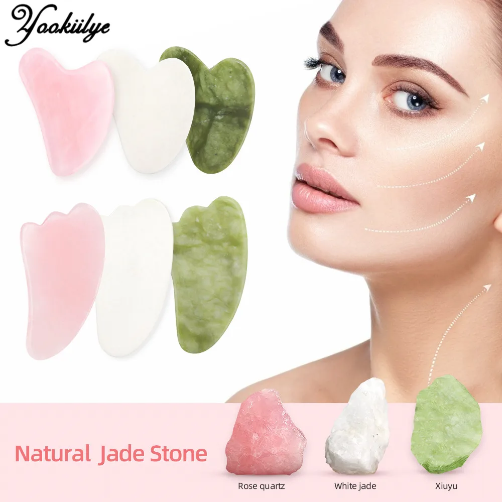 Mejor Herramientas de cuidado de la piel de YOOKIILYE Official Store por Natural Jade Gua Sha tablero raspador masaje de cuarzo rosa Jade Guasha piedra Chin cuello de la cara de arrugas removedor de belleza