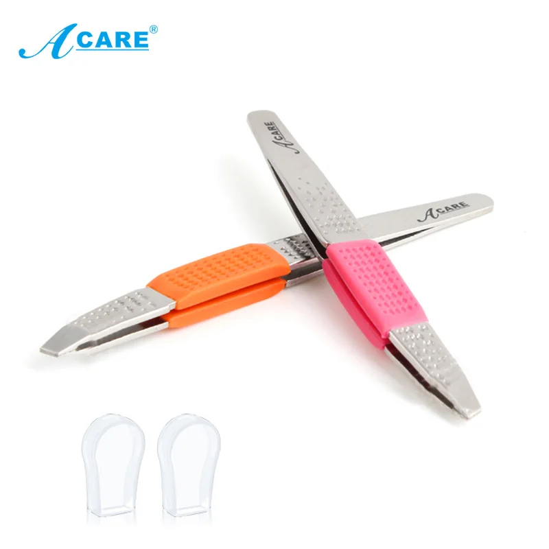 Name: Pinzas para cejas profesionales de acero inoxidable, mango esmerilado de silicona, antideslizante, Punta inclinada, depilación, útiles de maquillaje