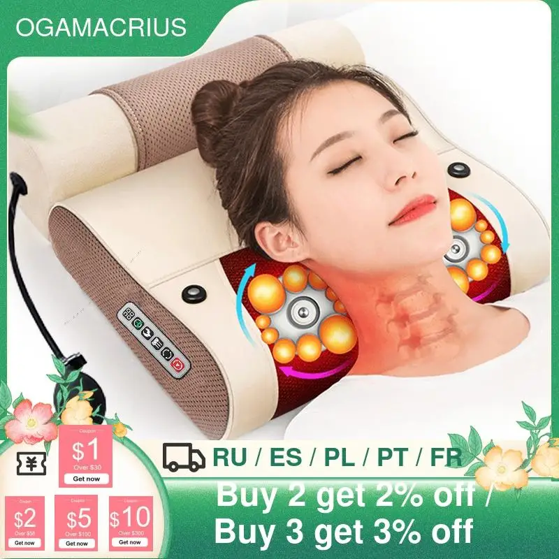 Name: OGAMACRIUS-almohada de masaje 2 en 1, dispositivo eléctrico de calor Shiatsu, relajación corporal saludable para cervicales, masajeador de cuello y espalda